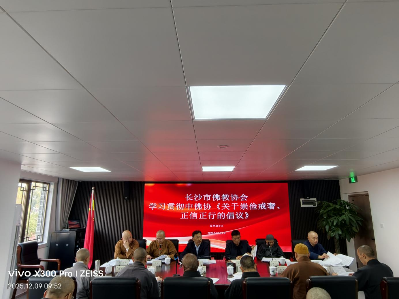 会议传达学习了党的二十届四中全会精神,集中学习了中佛协《关于崇俭戒奢、正信正行的倡议》、《汉传佛教活动场所殿堂供品供奉管理办法(试行)》,省佛协《关于规范我省佛教界代表人士出国(境)证照收存管理的通知》,市佛协《长沙佛教界开展“学法规、守戒律、重修为、树形象”教育活动工作方案》,审议通过《市佛协内设机构、职责及人员分工》等文件。会议通报并接受了监事长增慧法师向市佛协无偿捐赠房产的事项。