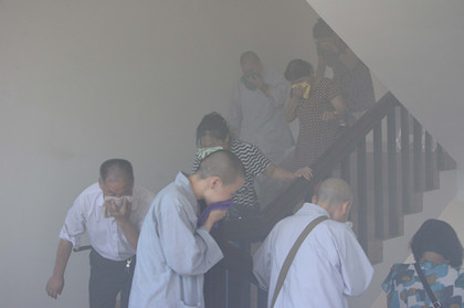9月1日上午,在玉泉寺所在街道及社区指导下,市佛协驻会工作人员与寺院僧众和居士一道,共同开展消防培训与演练。在以往消防讲座基础上,这次培训与演练内容丰富,形式多样,有消防安全常识、用火用电安全知识、灭火器扑灭初起火灾、火场逃生演练等等,达到了“消防消防,重点在防”的目的。