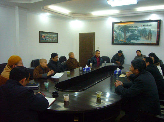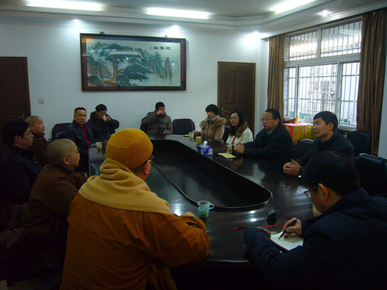 2016年2月5日,市委常委、统战部部长文树勋偕市委统战部副部长罗伟一行,在市民宗局局长刘佳勇、副局长王自书等领导陪同下,来我会走访慰问,并与市佛协会长坚愿,副会长能净、悟圣,展开了亲切而又朴实的座谈。