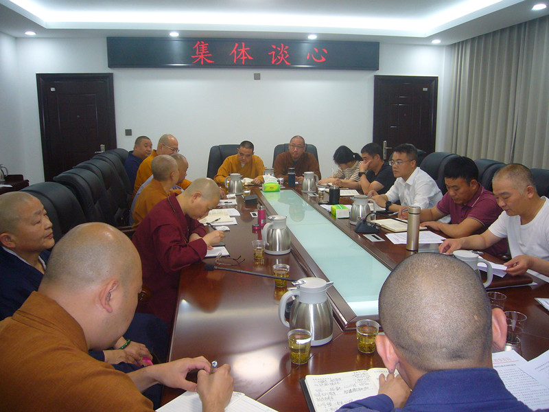 市委统战部副部长彭顺勇在市民宗局党组成员刘立新、市委统战部民宗处处长王昌伟等领导的陪同下,一行莅临市佛协视察工作并开展集体谈心,市佛协班子成员、重点佛教场所负责人及教职人员代表参加集体谈心。座谈会由市民宗局党组成员刘立新主持。